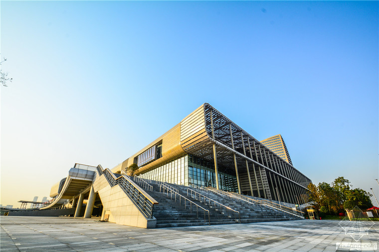 杭州國際博覽中心,位于杭州錢塘江畔,造型大氣而細膩,富于“江南意蘊”,是迄今為止中國乃至世界最大,最先進的超大型城市綜合體。杭州國際博覽中心總占地面積19.7公頃,總建筑面積85萬平方米,主體建筑由地上5層和地下2層組成,集會議、展覽、餐飲、旅游、酒店、商業、寫字樓等多元化業態為一體。內部共有五大核心功能,分別為:會議區、展覽區、辦公區、酒店區、配套服務區以及復雜的交通系統。